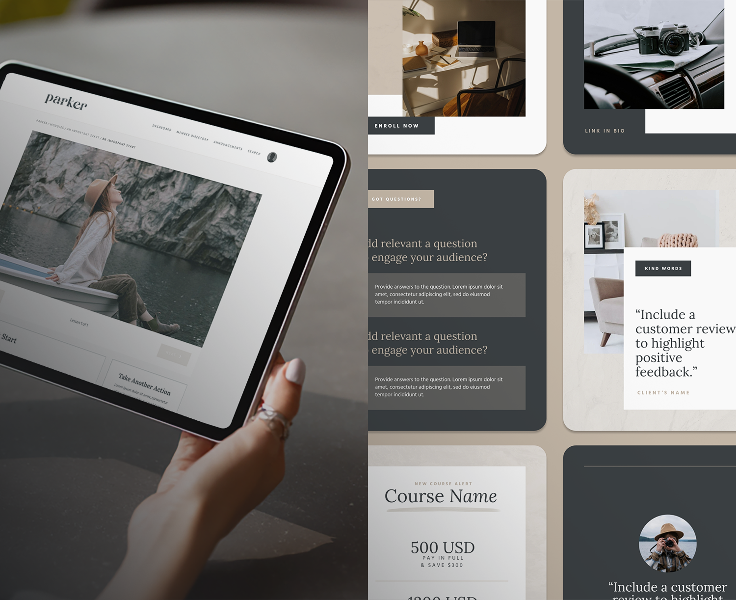 No more awkward stock photos or endless scrolling. This guide helps you plan and style your brand photoshoot with intention. You’ll get a curated shot list of must-have images for your Kajabi site—plus pro tips so you can show up confidently on camera.